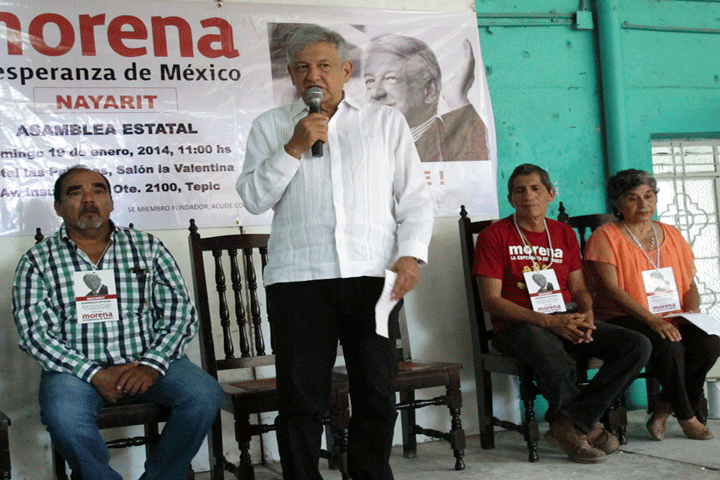 NOTICIAS 09/01/2014En marzo MORENA podría ser partido político: AMLOAndrés Manuel López Obrador, presidente del Consejo Nacional del Movimiento Regeneración Nacional (Morena), previó que podría ser en marzo cuando el Instituto Federal Electoral (IFE) notifique sobre el registro como partido político a esa organización.