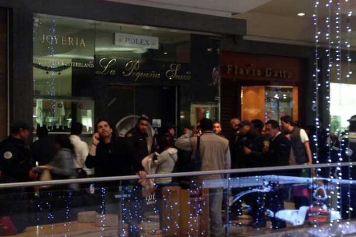 NOTICIAS 29/12/2013No fueron balazos, sino marrazos dice seguridad pública en asalto a joyería en Santa FéLa Secretaría de Seguridad Pública del Distrito Federal informó que ocho elementos encargados de la seguridad del Centro Comercial Santa Fe, obstaculizaron la investigación de los policías capitalinos tras el asalto a una joyería denominada "La Pequeña Suiza".