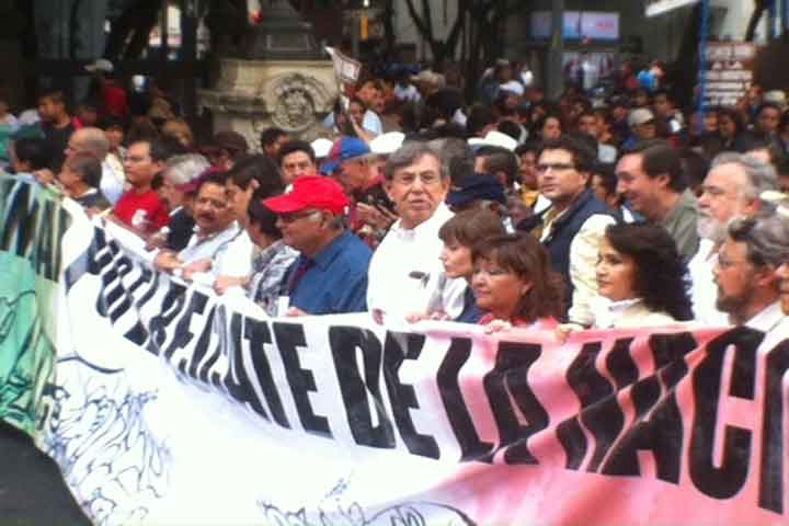 Con la llegada de Cuauhtémoc Cárdenas al Ángel de la Independencia inició minutos después de las 12:00 horas la marcha contra la reforma energética.