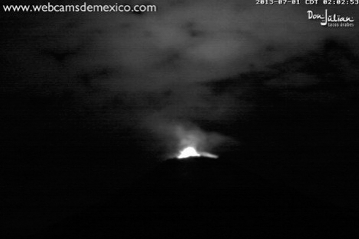 NOTICIAS 04/07/2013Popocatepetl registra 65 exhalacionesEl volcán Popocatépetl registró en las últimas horas 65 exhalaciones de moderada a baja intensidad, acompañadas de una emisión de ceniza de más de mil metros de altura, además ocurrieron tres eventos volcanotectónicos de baja magnitud y por la noche se observó incandescencia en el cráter.