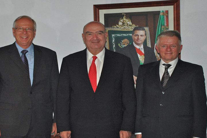 NOTICIAS 15/06/2013Visita el alcalde de Stuttgart MéxicoEn visita de cortesía, el Secretario de Medio Ambiente y Recursos Naturales, Juan José Guerra Abud, recibió en sus oficinas a Fritz Kuhn, Alcalde de Stuttgart, ciudad alemana que se caracteriza por el buen manejo de sus residuos sólidos, ya que reciclan más del 60 por ciento de los mismos y son una fuente generadora de energía, logrando su máximo aprovechamiento.