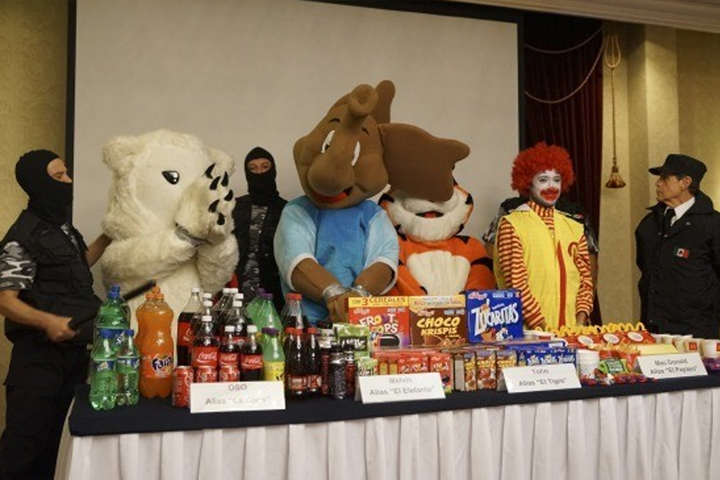 NOTICIAS 30/04/2013Presentan a los integrantes del "Cártel de la comida chatarra"La Alianza por la Salud Alimentaria "capturó" a los que llamó "los Capos del Cártel de la Chatarra" integrados por "Toño", alias "El Tigre"; Ronald McDonald, alias "El Payaso"; Melvin, alias "El Elefante" y el Oso Polar alias "La Coca".
