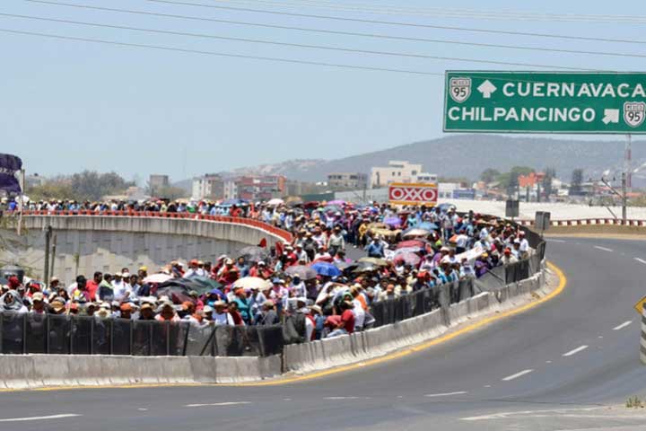 Luego de que los maestros de la CETEG bloquean por más de una hora la Autopista del Sol y arrancaron partes de la malla metálica que separa los sentidos en dicha vía, efectivos de la Policía Federal (PF) se hicieron presentes en el lugar, para dialogar con los manifestantes.