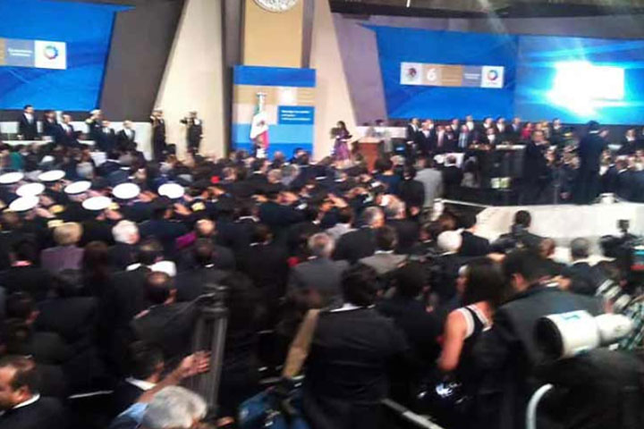 El ejecutivo es acompañado por Margarita Zavala y los titulares de Relaciones Ext... Ver más...