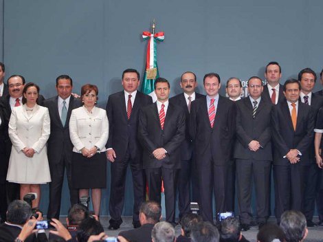 NOTICIAS 04/09/2012Peña Nieto anuncia 45 nombramientos de su equipo de transiciónEl presidente electo perteneciente a las filas priístas, Enrique Peña Nieto, presentó este día a quienes conforman su equipo de transición y el cual estará dividido en dos coordinaciones generales: una para la transición gubernamental, que encabeza Luis Videgaray y la otra, será de política y seguridad, de la que se hará cargo Miguel Ángel Osorio Chong.