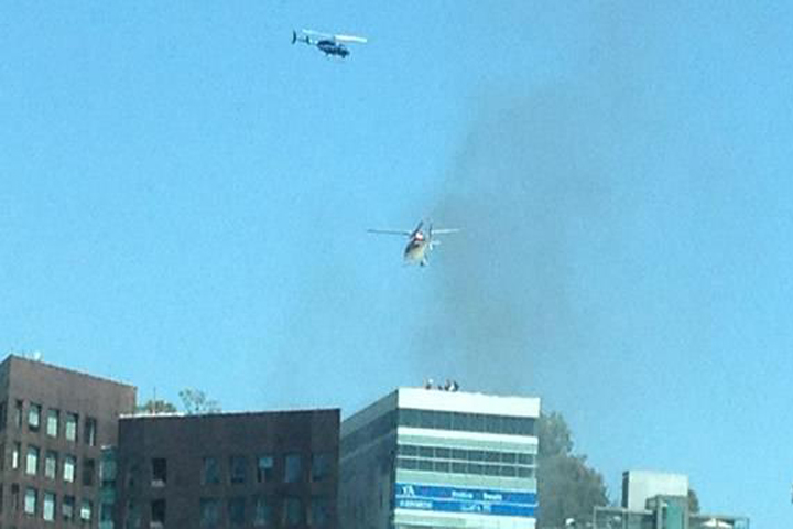 NOTICIAS 22/05/2012Helicóptero realiza maniobras para rescatar a personas atrapadas en incendio de un edificio de Santa FeBomberos de la Ciudad de México luchan contra un incendio en un edificio de 11 pisos en la zona residencial de Santa Fe, mientras que al menos 12 personas se ubican en la azotea del inmueble, según reportes de televisión.