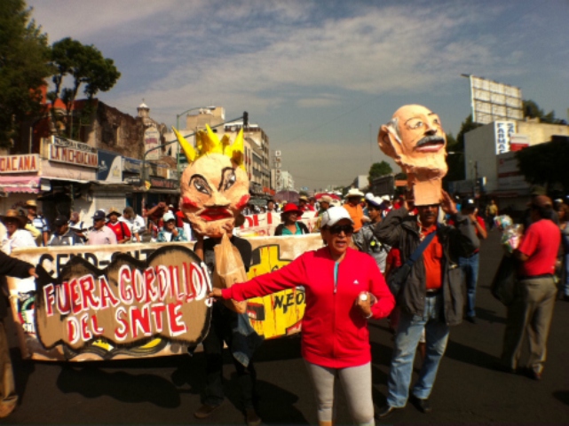 NOTICIAS 15/05/2012CNTE marcha en la Ciudad de México, exigen salida de Elba Esther del SNTEAl inicio de la marcha que realizan por calles de la ciudad de México, con dirección al Zócalo capitalino, maestros portan distintas pancartas. Una de ellas con la leyenda "fuera Gordillo del SNTE".
