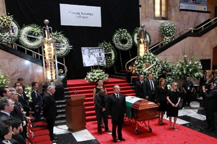 NOTICIAS 16/05/2012Entre aplausos y ovaciones, México despide a Carlos Fuentes en Bellas ArtesUna gran ovación rompió el silencio imperante al interior del Palacio de Bellas Artes, al punto de las 11:53 horas de hoy, para recibir el féretro con los restos mortales del escritor mexicano Carlos Fuentes, muerto ayer, en esta ciudad.