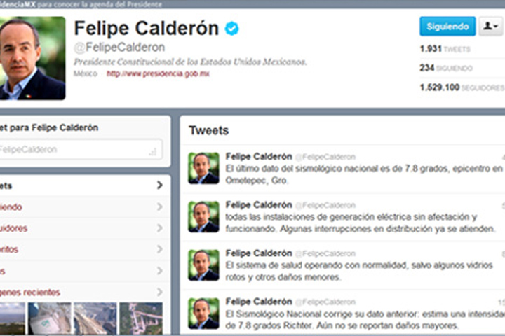 "No se reportan hasta el momento daños graves por el sismo de 6.6 grados -posteriormente la SSN modificó el dato a 7.8-" tuiteó FCH en su red social.