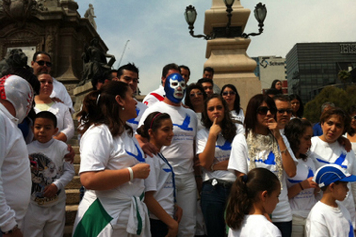 NOTICIAS 18/03/2012Con poca participación, Blue Demon Jr. encabeza marcha"Todos somos uno en contra de la delincuencia" fue la frase con la que el luchador Blue Demon Jr. lanzó la convocatoria ciudadana para manifestarse contra la este problema que azota a toda la república mexicana.