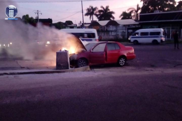 El choque de dos automóviles causó que uno de ellos se incendiara sobre la avenida Melchor Ocampo con el cruce de la avenida rector Hidalgo en la ciudad porteña de Lázaro Cárdenas.