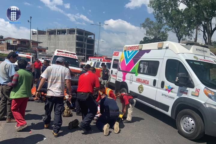 Dos personas resultaron lesionadas como consecuencia del choque entre dos motonetas sobre Avenida Revolución Sur, del municipio de Zitácuaro, donde se hicieron presentes elementos de la Subbdirección del Heroico Cuerpo de Bomberos y Protección Civil, para atender a los heridos.