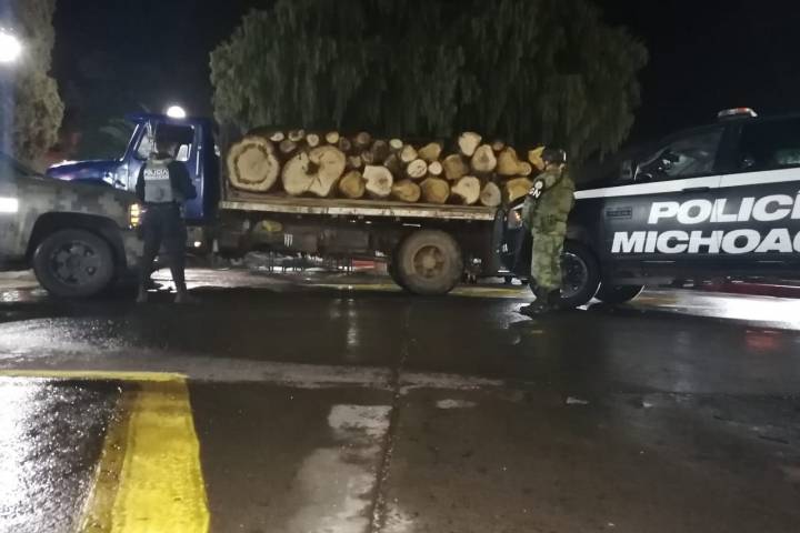 Agentes de la PolicÃa Michoacán efectuaban labores operativas en las inmediaciones de la localidad de Opopeo, cuando localizaron un vehÃculo de cargado de madera, sin que se localizara alguna persona que acreditara la legal procedencia.