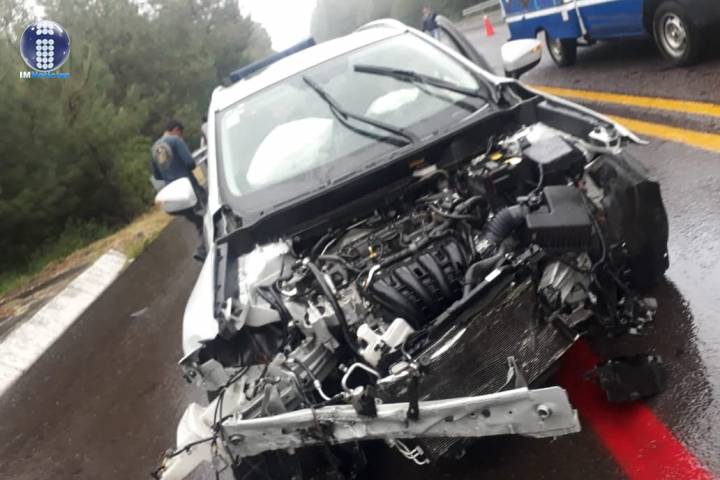 Un vehículo fue encontrado totalmente destrozado del frente a consecuencia de un choque, pero se ignora contra qué colisionó, pues la piloto de la unidad fue localizada totalmente desorientada, según refirieron contactos policiacos a este medio de comunicación.