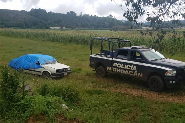 En atención al reporte, agentes de la Policía Michoacán implementaron un dispositivo de búsqueda en la zona, localizando la unidad marca wolkswagen en un predio ubicado en la comunidad de Tenácuaro.