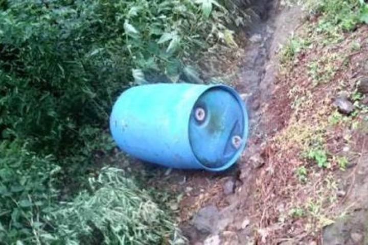 Elementos de la Policía Michoacán acudieron al sitio ubicado sobre una brecha localizada en la colonia La Cofradía, lugar donde se encontró el recipiente con aproximadamente 50 litros del químico, color blanco.