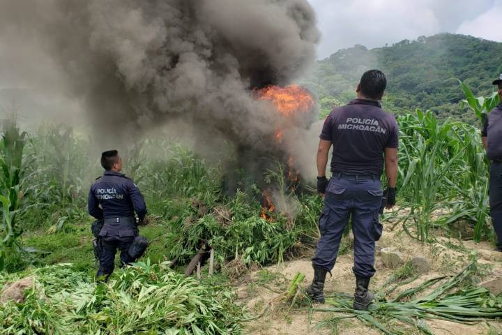 En atención a una denuncia ciudadana, los agentes de la Policía Michoacán implementaron un operativo, en la comunidad de Santa Gertrudis, sitio donde se aseguraron cuatro plantíos de la ... Ver más...