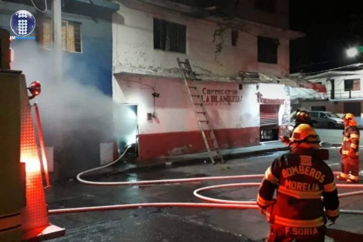 Un incendio se registró la madrugada de este viernes en una carnicerÃa que está ubicada en la colonia Las Flores en esta ciudad de Morelia, en la parte de arriba del comercio también hay una vivienda que resultó perjudicada, según dijeron en el lugar de los hechos las autoridades de auxilio y policiacas.