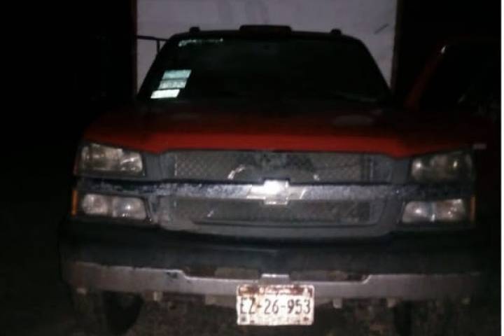 Oficiales de la Policía Michoacán, ubicaron una camioneta marca Chevrolet, color rojo, con las compuertas traseras abiertas, por lo que procedieron a revisar los antecedentes de la unidad.