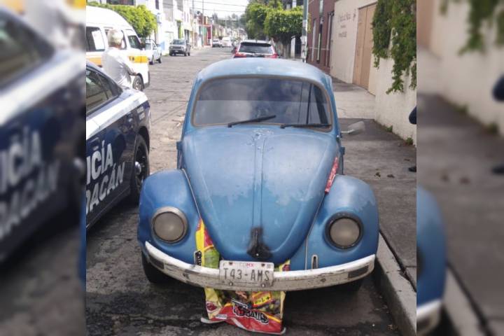 Durante recorridos de disuasión del delito sobre la calle Río Mayo de dicha colonia, agentes de la Policía Michoacán ubicaron un vehículo marca Volkswagen color azul, el cual se encontraba con las puertas abiertas por lo que procedieron a revisarlo.
