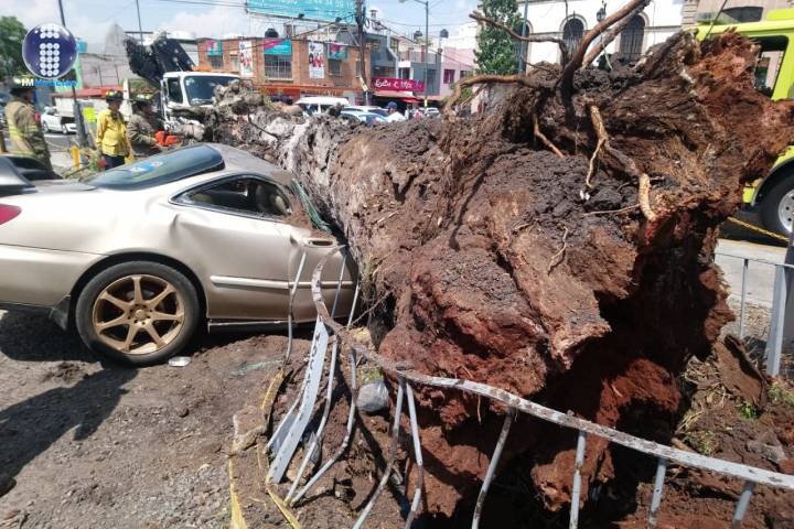 NOTICIAS 17/06/2019Árbol colapsa y aplasta automóvil en Morelia; hay una peatona herida