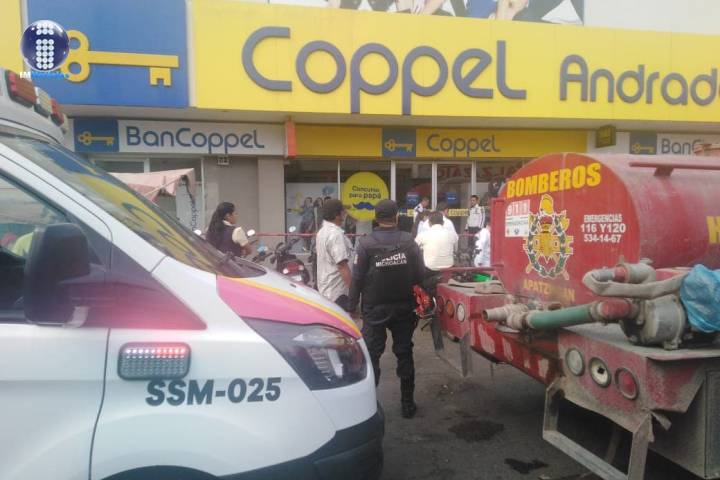 Cuerpos de socorro y elementos policiacos se movilizaron a la tienda Coppel ubicada en el Centro del municipio de Apatzingán.