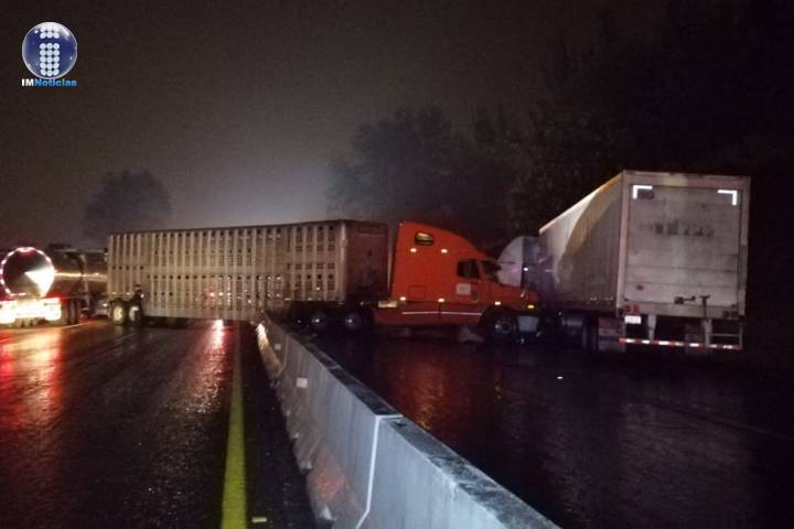 Un autobús de la línea Purhépechas se estrelló contra un muro de contención central de la carretera Morelia-Pátzcuaro, y a consecuencia de ello una pasajera quedó herida. Derivado de dicho incidente -a escasos 10 metros- dos tráilers protagonizaron una colisión frontal;
