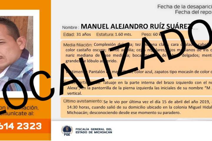 Se trata del joven Manuel Alejandro Ruiz Suárez, de 31 años de edad, desaparecido desde el pasado 10 de abril y que por desgracia fue muerto a balazos en el municipio de Hidalgo.