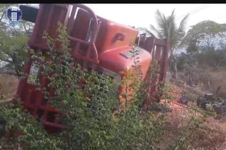 Un camión de carga que transportaba jitomate se volcó y esto causó pérdidas materiales y la movilización de cuerpos de rescate y de policÃa, en el municipio de Aguililla.