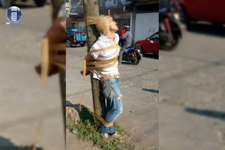 Por segunda semana consecutiva, habitantes de esta ciudad de Uruapan, y ante el hartazgo social, la inseguridad que se vive y la ola de asaltos y robos a todas horas del día, detuvieron a otro presunto ladrón, lo ataron con cinta a un poste y lo exhibieron públicamente durante varias horas.