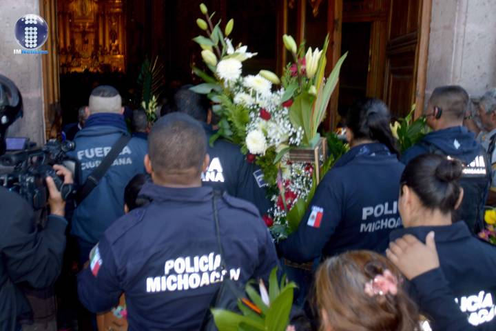 Los oficiales quienes se dijeron agradecidos por las bendiciones y los cuidados que consideran reciben durante su peligrosa tarea, marcharon en compañía de una banda de viento y con ofrendas florales al templo en mención.
