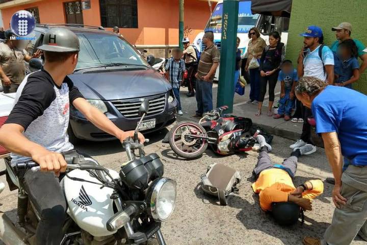Un joven resultó con diversas en lesiones en el cuerpo debido a que la motocicleta en que viajaba se impactó contra una camioneta en el Centro del municipio de Jacona.