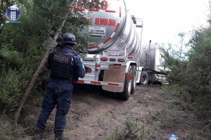 Elementos de la Policía Federal aseguraron un tractocamión con pipa cisterna con capacidad de 31 mil litros (vacía) en estado de abandono con reporte de robo de C-4 Fortín de las Flores, Veracruz.