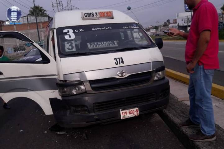 NOTICIAS 28/07/2018Tres pasajeros heridos en un choque de combi de la Ruta Gris 3 contra un volteo Tres pasajeros de una combi de la Ruta Gris 3 resultaron lesionados al momento de que dicha unidad protagonizó un choque contra un camión tipo torton, dijeron fuentes policiacas.