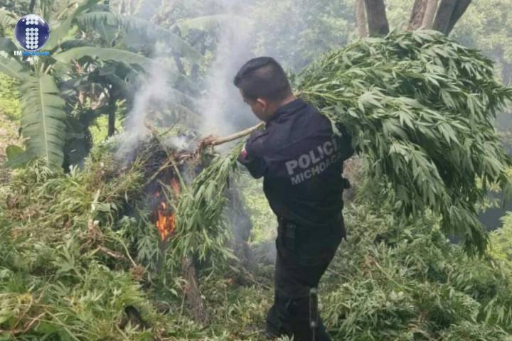 Elementos de la Policía Michoacán aseguraron y destruyeron una plantación de marihuana en el municipio de Madero.