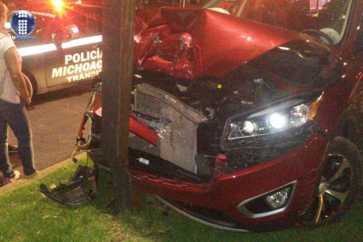 NOTICIAS 14/07/2018Coche choca contra objeto fijo en Apatzingán