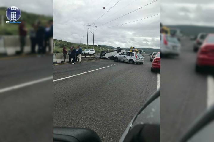 Un choque-volcadura entre dos unidades automotrices dejó únicamente daños materiales, el percance se registró en el tramo carretero Morelia-Salamanca, en las inmediaciones de la planta de Petróleos Mexicanos (Pemex), se supo en la una labor periodística.