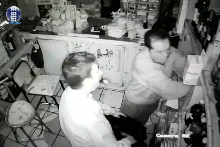 Un robo contra un negocio de venta de abarrotes fue captado en vídeo por una cámara de vigilancia. En el material se observa que al menos tres sujetos participaron en el atraco.