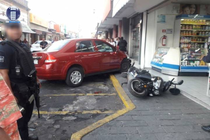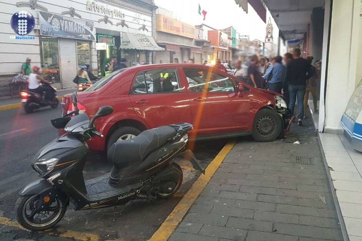 La conductora de un vehículo quedó herida al momento de que su unidad se estrelló contra un comercio, ubicado en la zona centro de esta ciudad de Zamora.