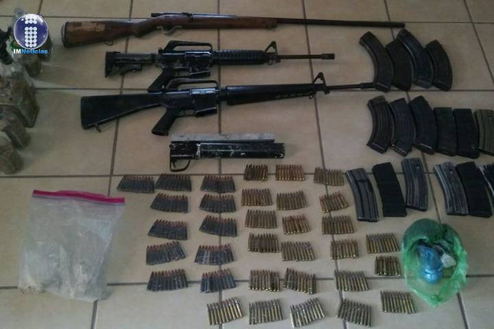 Elementos de la policía Michoacán y soldados de la 43 Zona Militar aseguraron un arsenal así como droga conocida como cristal en el municipio de Gabriel Zamora.