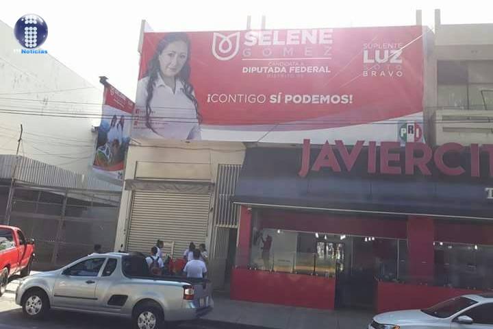 Un hombre con un machete destruyó una lona de propaganda política de la candidata a diputada federal, Selene Gómez, la cual era exhibida en una camioneta del equipo de la aspirante. Algunos curiosos mencionaron a la Policía que el hombre también amagó con el arma blanca que traía a los seguidores de la aspirante, pero no pasó a mayores.