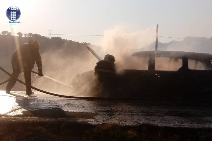 Un automotor se incendió en el municipio de Purépero donde elementos de la Asociación de Bomberos del Estado de Michoacán acudieron al rescate.