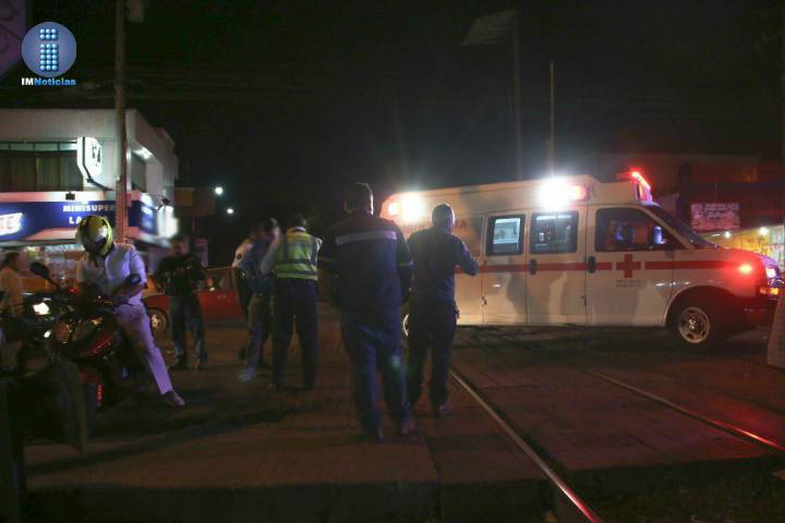 Un hombre resultó herido levemente al ser aventado por el tren, cuando trataba de evitar que su motocicleta, la cual estaba estacionada próxima a las vías, fuera impactada por la máquina, dijeron fuentes policíacas.