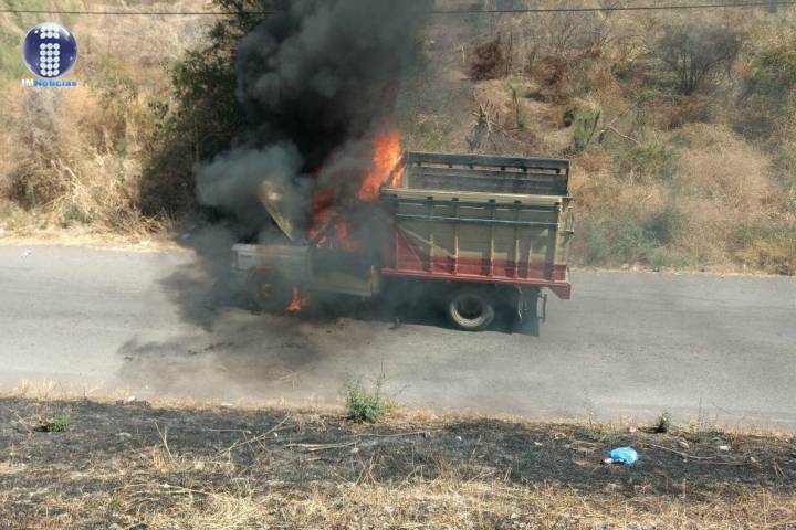 Una camioneta se incendió debido a una falla mecánica, acontecimiento registrado esta tarde a un lado de la carretera Cuatro Caminos-Apatzingán, a la altura de la población de Antúnez en este municipio, se supo en la labor periodística.