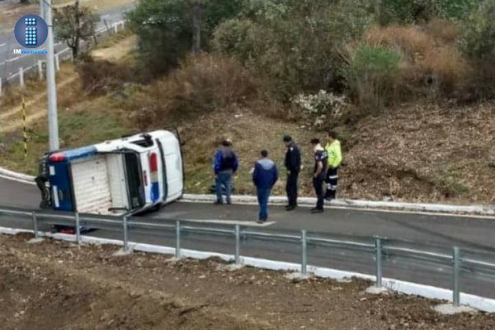 Tres policías de Lagunillas sufrieron contusiones al volcar la patrulla en la que circulaban cerca de la carretera Pátzcuaro-Morelia, esto derivado de una falla mecánica en la mencionada unidad motriz.