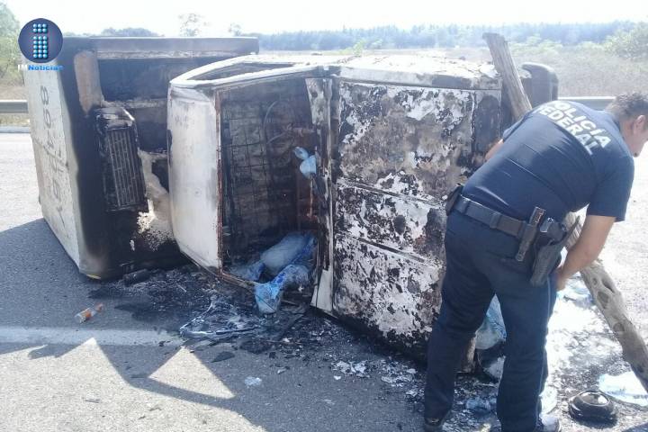 Una camioneta que transportaba hielo se incendió en el municipio de Lázaro Cárdenas.