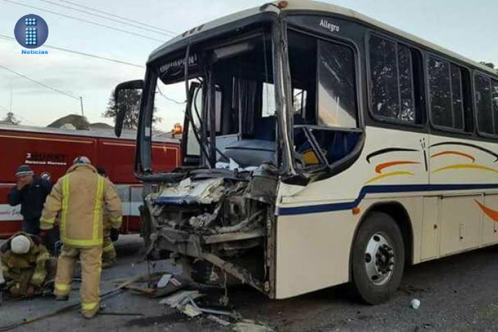 NOTICIAS 18/01/2018Chofer de un autobús de pasajeros queda malherido en choque contra camión volteo