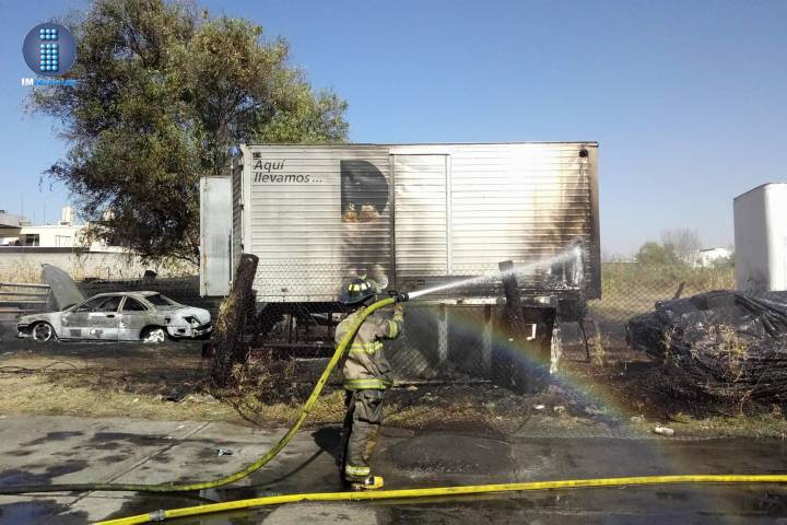 Calcinado acabó un automóvil, además una camioneta y la caja de un camión resultaron parcialmente quemadas durante un incendio registrado en un predio ubicado en la colonia Doctor Miguel Silva.