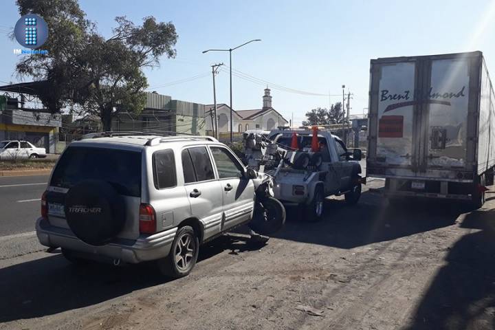 Tres vehículos protagonizaron un choque múltiple en la carretera Morelia-Salamanca, a la altura de la entrada al fraccionamiento Santa Fe en esta ciudad, según los datos obtenidos por esta redacción.