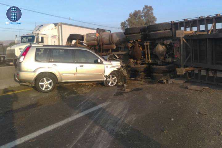 Sobre la carretera Morelia-Salamanca volcó un tráiler y su conductor resultó herido, además consecutivamente una camioneta se estrelló contra el tractocamión siniestrado, situación que generó gran caos automotriz en la citada vialidad.